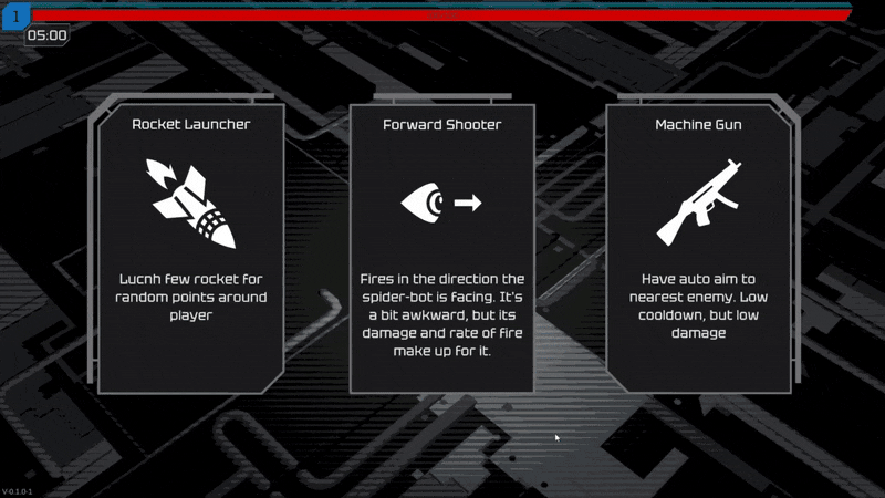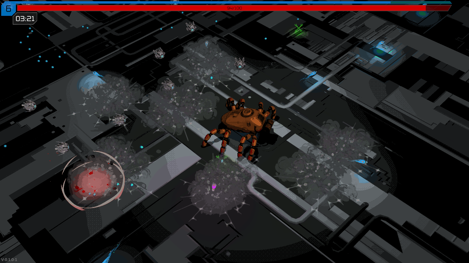 You operate a combat robotic spider, surrounded by endless waves of hostile drones and automated systems.